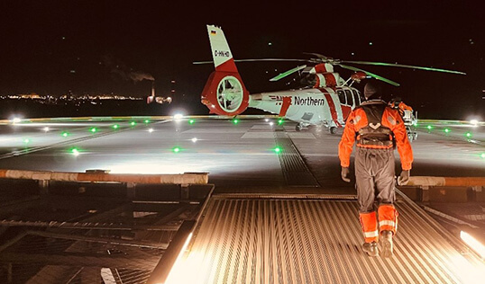 In the Netherlands, the Heliport Eemshaven is the ideal gateway for transport and supply flights to offshore projects in the Exclusive Economic Zone in the North Sea. It is certified as an international heliport for take-offs, landings, and parking in the north-western part of Eemshaven. It is located close to the Borkum ferry service of AG “EMS” Borkumlijn.