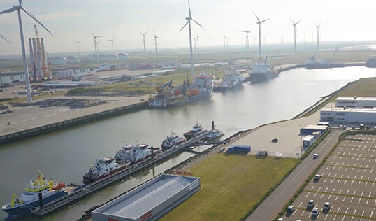Our largest service hub in Eemshaven (NL) features warehouses, open storage space, bunkering services, waste management services, agency services, and a heliport. Whether you need a full-service solution or a custom-fit selection of services we got it covered.